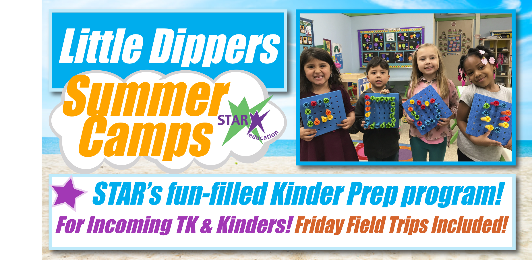 Get your incoming TK or Kindergartener excited and ready for the year ahead with STAR’s fun-filled Kinder Prep program! Specially tailored for incoming TK and Kindergartners, this program helps children ease into school life through hands-on exploration in science, art, movement, and playful learning. In this warm, safe, and nurturing environment, students build confidence, practice routines, meet new friends, and grow comfortable on campus before their first day of school even arrives. From creative projects to engaging discovery activities, every day helps them feel prepared, happy, and eager to learn.