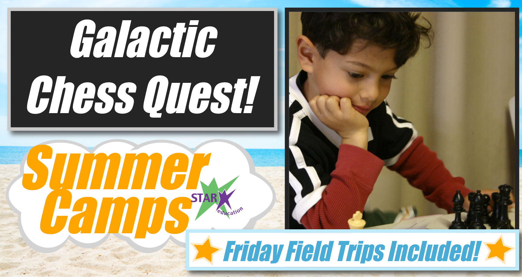 Grab your “Planet Passport” and launch into a galactic chess adventure! In this space-themed chess journey, campers become space chess explorers who will engage with interactive robotic chess boards that respond to moves, tackle cosmic strategy puzzles, and use advanced tools to analyze games like never before. Guided by expert coaches, players level up their strategy, logic, and confidence through fast-paced activities and mission-based challenges that teach students how to work in teams, spot patterns, predict outcomes, and think three moves ahead, just like true cosmic tacticians. Students will explore innovative tactics, track their progress using futuristic tech, and plan strategies. The week concludes with our exciting Galactic Chess Quest Tournament, where campers can test their new skills by playing friendly matches against one another or take on “tech” chess boards in a relaxed, low-pressure environment. By the end of the journey, every player emerges as a bold Chess Captain ready to rule the galaxy of strategy!
